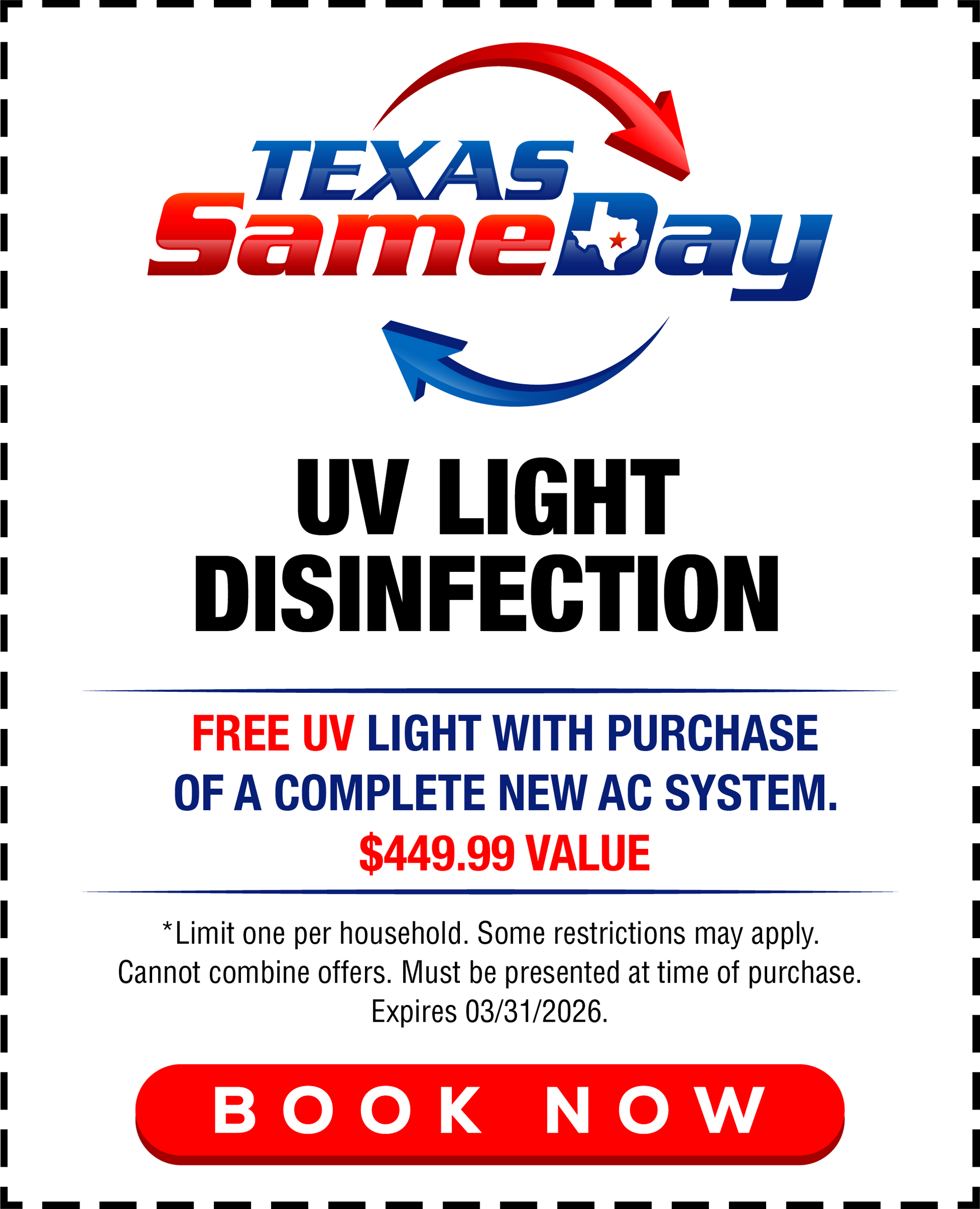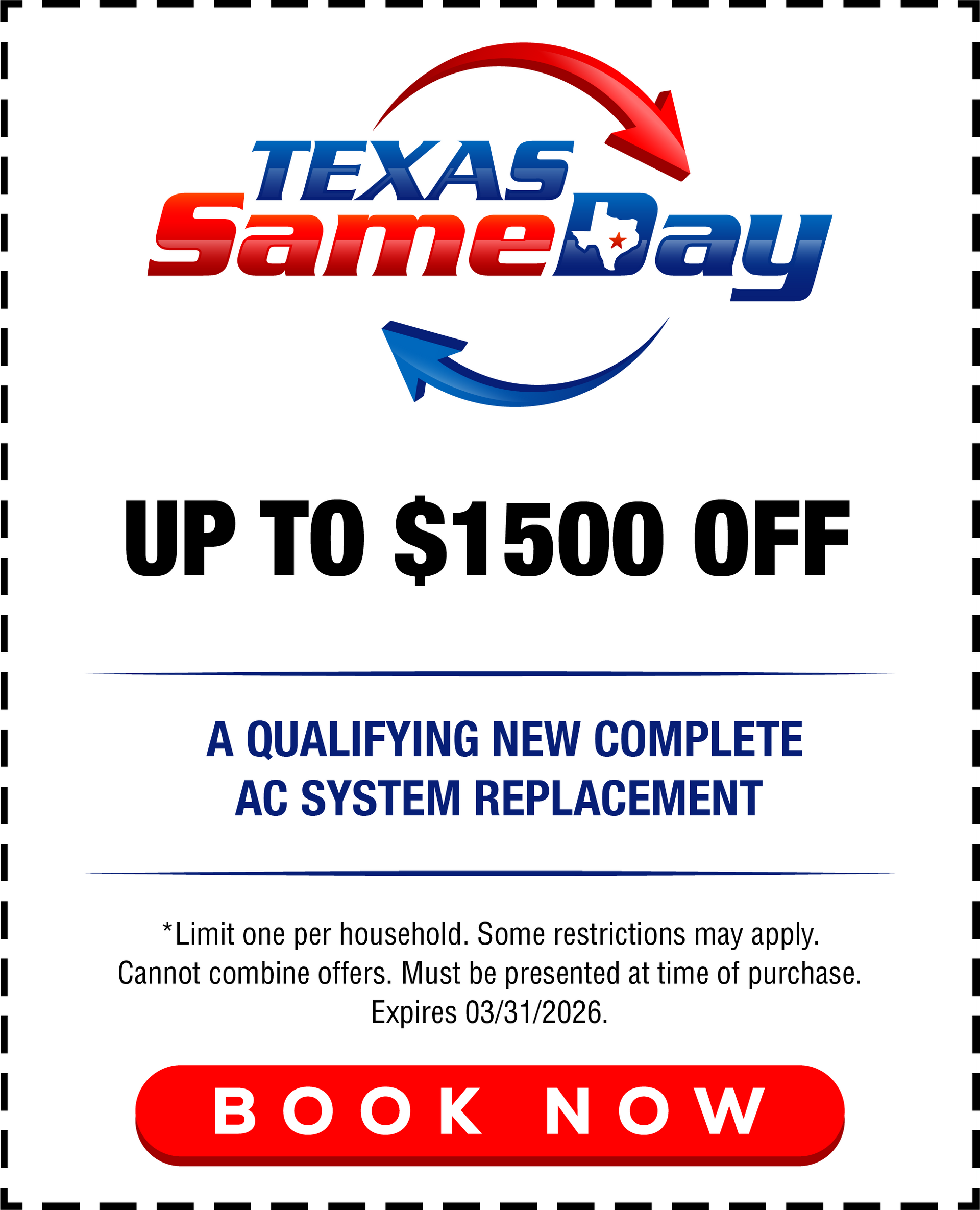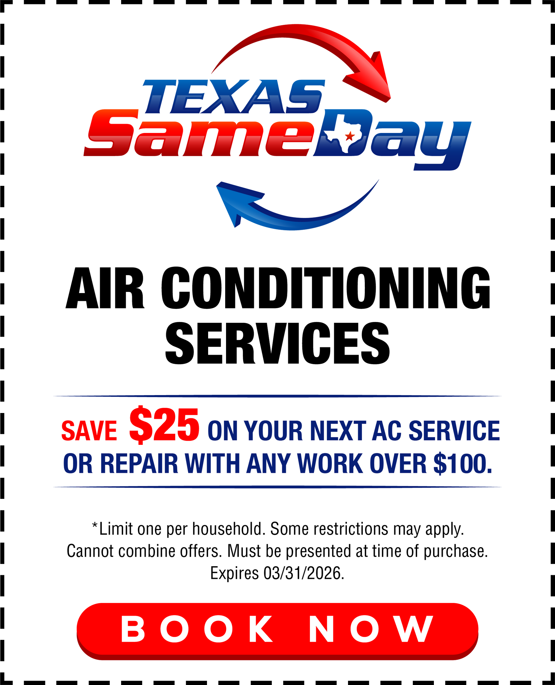 Don't miss out our your air conditioning coupons today and enjoy affordable AC services with Texas Same-Day Air Conditioning, Heating & Plumbing.